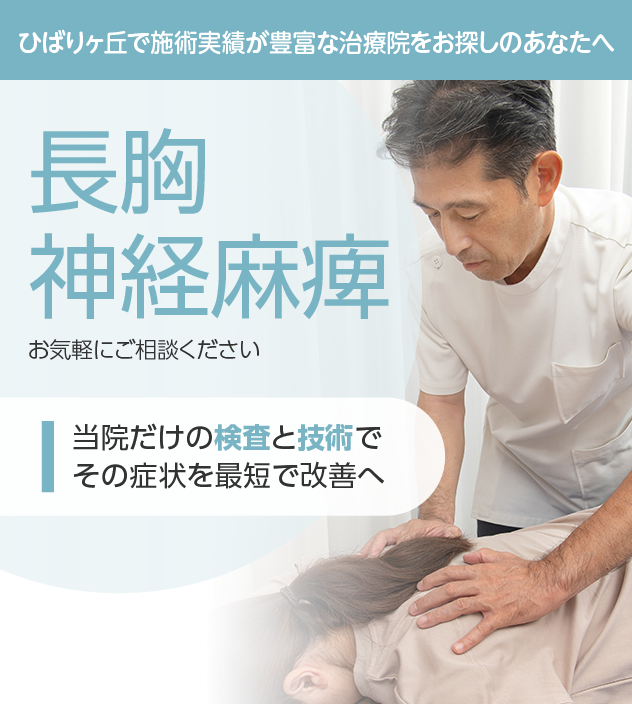 変化を見逃さない一貫性が治療効果を高め、それが当院の豊富な改善実績に繋がっています。長胸神経麻痺は神経系の専門知識と豊富な経験を持つ院長にお任せください。
