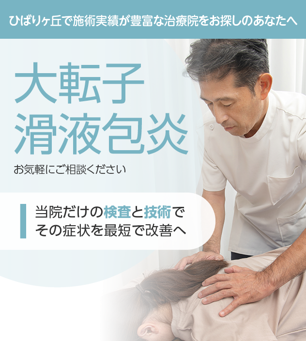 病院やほかの治療院で改善しなかったとしても諦める必要はありません。大転子滑液包炎は豊富な施術実績を誇る当院にお任せください。