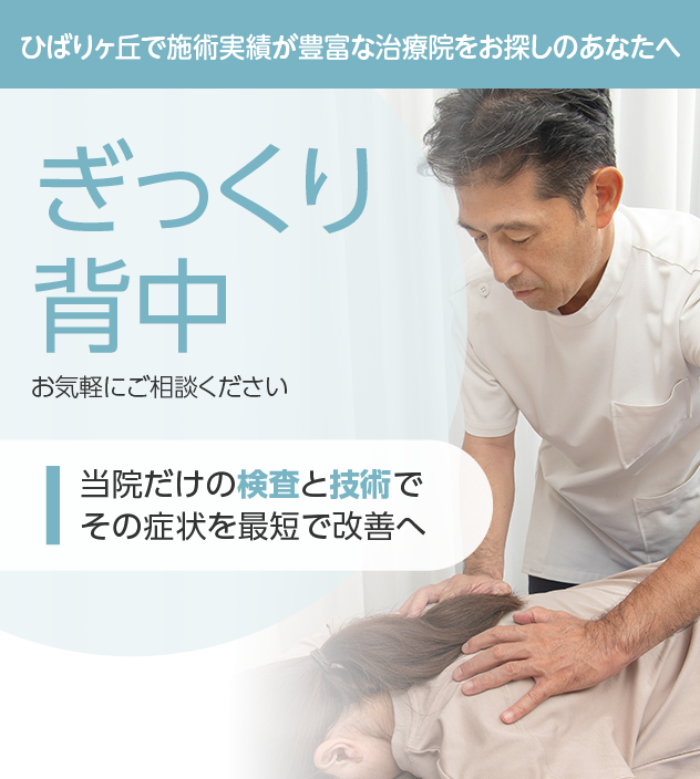 病院やほかの治療院で改善しなかったとしても諦める必要はありません。ぎっくり背中は豊富な施術実績を誇る当院にお任せください。