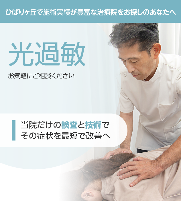 病院やほかの治療院で改善しなかったとしても諦める必要はありません。光過敏症は豊富な施術実績を誇る当院にお任せください。