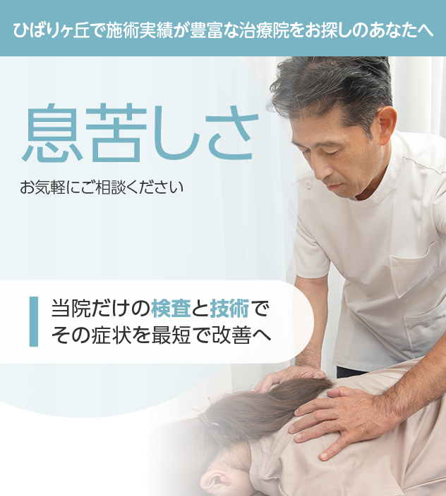 病院やほかの治療院で改善しなかったとしても諦める必要はありません。息苦しさは豊富な施術実績を誇る当院にお任せください。