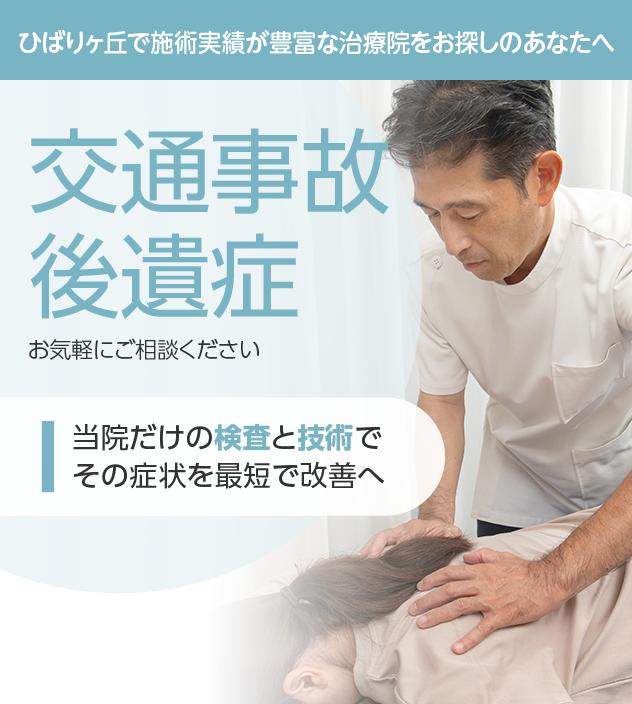 病院やほかの治療院で改善しなかったとしても諦める必要はありません。交通事故後遺症は豊富な施術実績を誇る当院にお任せください。