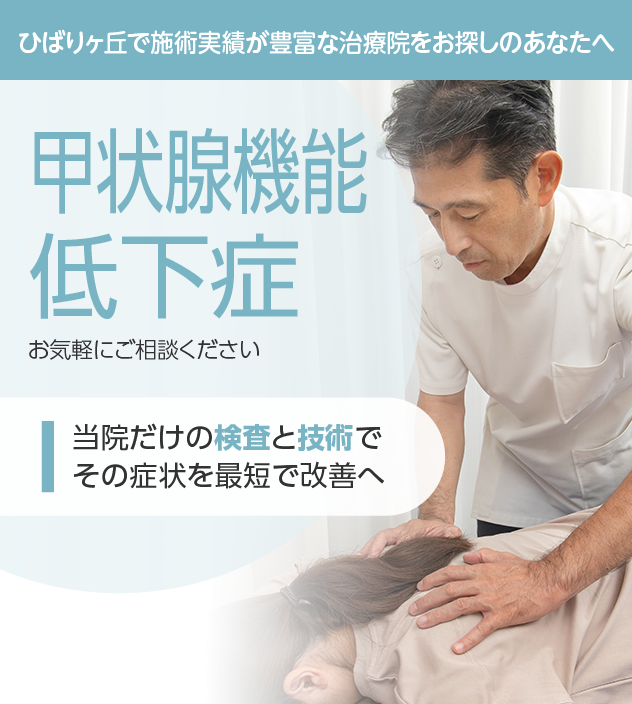 病院で薬を処方されても根本的な改善が見られない場合は、別のアプローチが必要かもしれません。甲状腺機能低下症でお困りなら、豊富な施術実績を誇る当院にお任せください。