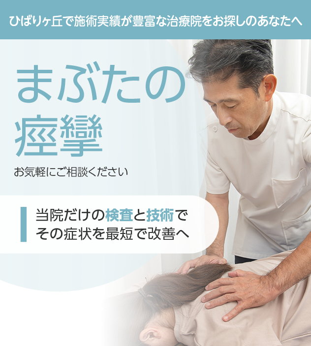 病院やほかの治療院で改善しなかったとしても諦める必要はありません。まぶたの痙攣は豊富な施術実績を誇る当院にお任せください。
