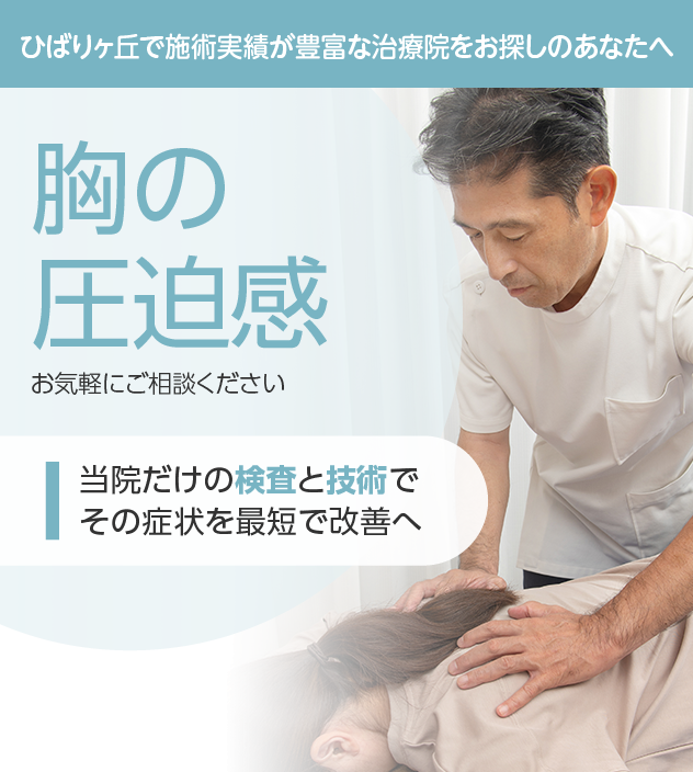 当院は、他に類を見ない充実した検査で、胸の圧迫感の原因を見つけ出します。そして明確な根拠を元にして施術を進めていきます。