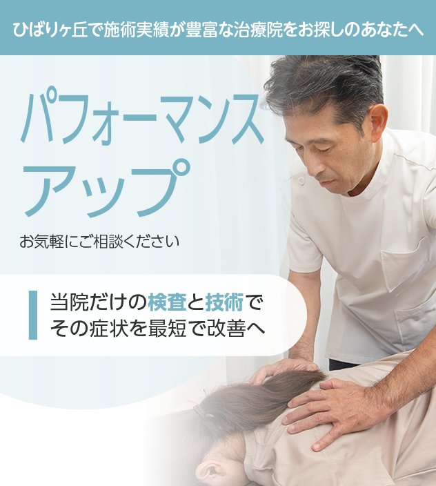 病院やほかの治療院で改善しなかったとしても諦める必要はありません。パフォーマンス低下は豊富な施術実績を誇る当院にお任せください。