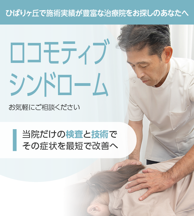 病院やほかの治療院で改善しなかったとしても諦める必要はありません。ロコモティブシンドロームは豊富な施術実績を誇る当院にお任せください。