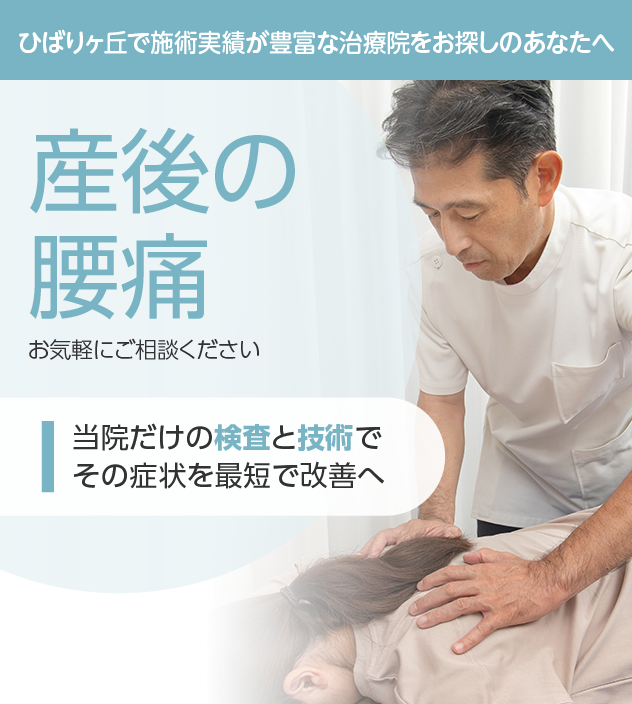 変化を見逃さない一貫性が治療効果を高め、それが当院の豊富な改善実績に繋がっています。産後の腰痛は神経骨格だけでなく、自律神経の専門家でもある院長にお任せください。